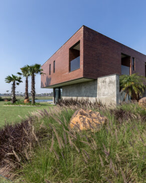 Para criar o carácter dessa residência, procurou-se fazer um objeto arquitetônico de grande sobriedade e simplicidade, que fosse equilibrado e rigoroso, onde os diferentes materiais empregados se mostrassem em sua essência, sem intermediários. A residência parte de um grande prisma retangular em tijolo pousado sobre lâminas de concreto que organizam os espaços. Deste prisma, são subtraídos volumes onde ocorrem as aberturas e as sacadas do segundo pavimento.